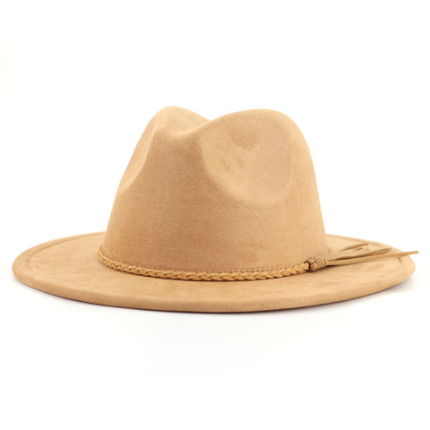 Chapeaux de Cowboy en daim pour femmes coloré goutte d'eau retrousser bord Fedora chapeaux unisexe tissu corde bande chapeau