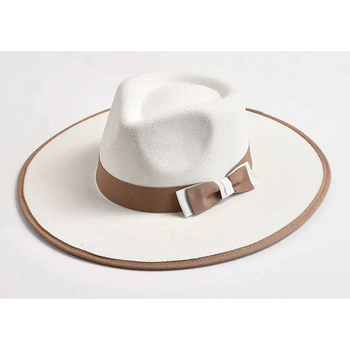 Chapeaux Fedora en laine personnalisés Bord d'enchérissement Double couche Arc Bande Décoration Goutte d'eau Chapeaux à large bord pour les femmes