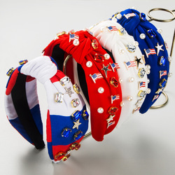 New Design Independence Day Handmade atado Headband frisado Bandeira Estrela Cabelo Acessórios para Mulheres